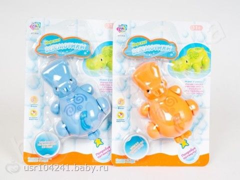 Бегемотик сзади заводится и едет по полу или плывёт по воде...