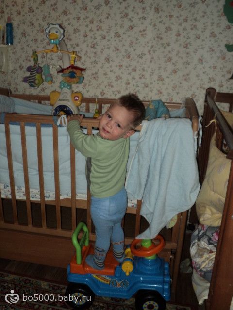 полтора годика максику и вот что мы умеем из нового. любим везде лазить. на улице на лазелке, на дёмину кроватку, на диван, на кухонный уголок и даже на столы. альпинист. продолжаем развивать мелкую моторику. научились брать предметы двумя пальчиками. хорошо берем монетки двумя пальчиками и кладем их в копилку (советую, очень хорошо моторику развивает). ну и все что связано с моторикой делаем, учимся расстегивать молнию, развязывать шнурочки и т.д. получается хорошо. сами залезаем на каталку и отталкиваемся ножками назад. начали что то говорить. ба-ба, па-па, дя-дя, ну и когда хнычем кричим ма-ма.тараторим на своем непонятном. помогает мне мыть чищенную картошку, подает по одной. осваиваем шнуровки. весит максим 13,3 кг. ходили с максимом на елку. носился там как угорелый и вместе со всеми артистам хлопал)))