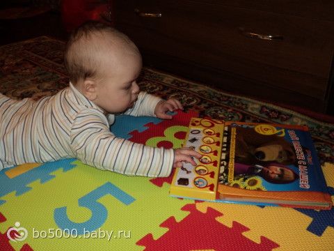 дёмочке завтра 5 мес. берем сами игрушки руками. сегодня понравилось фантик на пол кидать. поет песни))) отталкивается ножками и прыгает. лежа на животике упирается на ладошки. улыбчивый мальчик. спит со мной. утром радуется когда я просыпаюсь. и максик утром бежит и залезает к нам. весит дёма 9кг. рост не мерила, но одежду размером 80 покупаем.