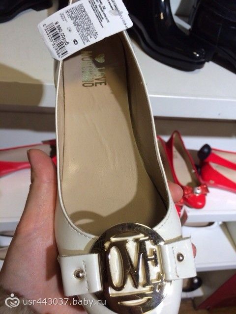 Обувь жуткая, везде а-ля москино и т.п., невооруженным глазом видно, что это ПОДДЕЛКА! балетки какие-то зачуханные в клее и с дешевыми надписями бренда! фото прикладываю