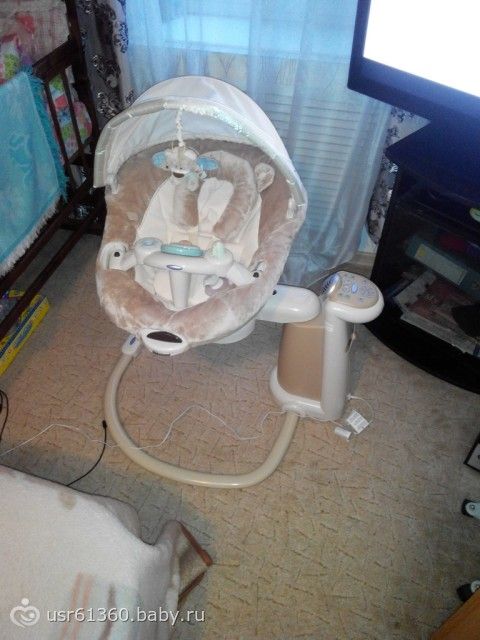 Решили с мужем купить ребенку на НГ кресло-качели, и ей хорошо и нам уж тем болееПонравилась нам в Маминой заботе, рядом с Москвой, купили, там нам ее проверили, все нормально.Качель хорошая,6 скоростей укачивания, музыка, вибрация… довольные приехали домой… она поработала 5 мин и все