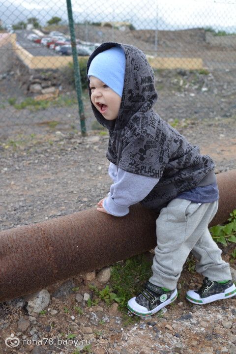 Был один пасмурный день, тогда тепло оделись (в кофты), гуляли, шапка, на ребенке, конечно, лишняя, но он такой милый в ней :):):) Остальные дни радовали солнцем и теплом :)