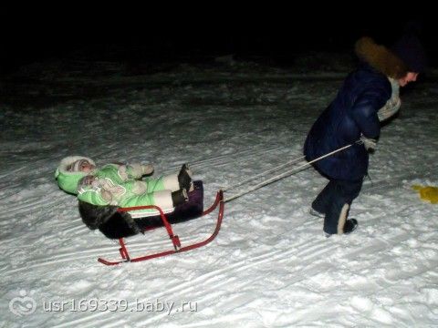 Вот тут и был весь адреналин!!! Девочки вот скажите откуда у детей столько смелости? храбрости? Под окнами горки у нас да не хилые угол наклона крутой!!! И тут дёрнул меня леший ляпнуть что хочу прокатиться… Доча услышала и всё уже не отстала пока маму не посадила на санки!!!