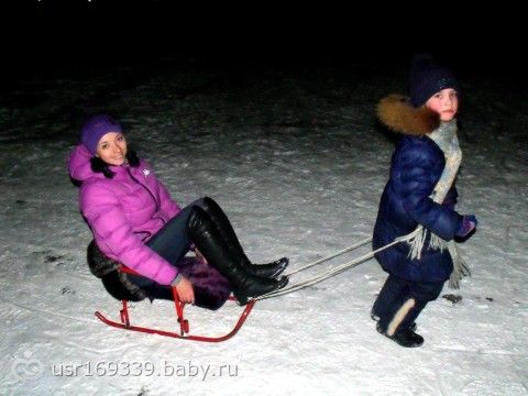 а тут компания шумная пришла на ледяную горку… тоже очень крутую… и тетя незнакомая полину позвала кататься) и знаешь… полина пошла!!! и потом кричала еще еще еще! тетя ее катала на клеенке с кухонного стола