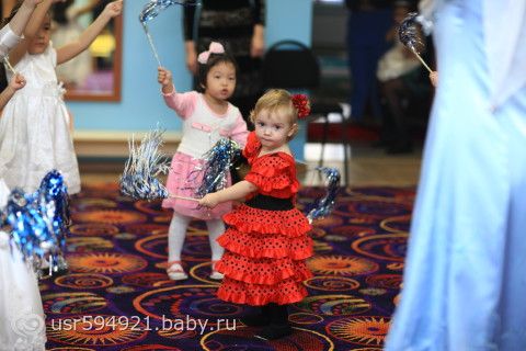 Ну я как всегда с опозданием)))). Вот и случился наш первый детсадовский утренник. Не успели родиться как и до утренника доросли уже. Я ждала этот утренник с нетерпением и даже немного прослезилась. Очень уж хотелось на дочку «взрослую» посмотреть. Ну так как у нас группа самая маленькая, то роли и костюм нам не раздали и мы решили выгулять своё платье которое специально для малышки было привезено с Испании. Мероприятием все остались довольны. А вот и наша Испаночка.