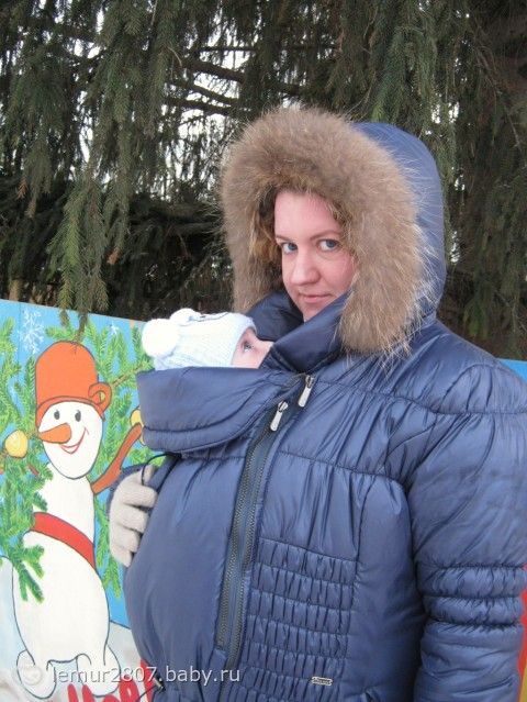 Ну вот наконец-то я купила то, что хотела… Слингокуртку и слинг(в субботу ещё эргорюкзак пришлют).Т.к. с коляской ходить мне не очень удобно решила приобрести сие чудо.Вот сегодня первый раз вышли в этом всём гулять.Так удобно, руки свободны, малышка спит.городок у нас не большой, поэтому смотрели на меня как будто я инопланетянин, ну самое главное, что нам с малышкой удобно.Правда надо попрактиковаться в технике наматывания, ну ничего, освою… Для девочек кто просил выкладываю фото..
