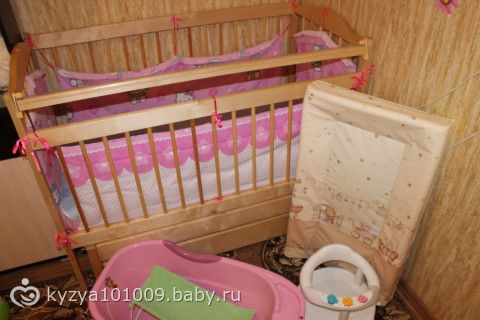 Ванночка, горка для купания, стульчик для купания и пеленальная доска в подарок. Доска крепится к кроватке.