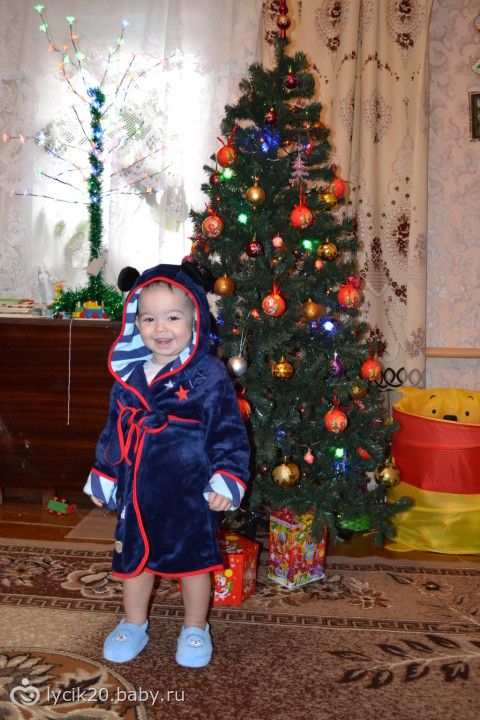 Утром получила свой заказик от китайского деда морозасынуле халат, очень о ему понравился, даже не хотел снимать, ну фото нашей елочки.