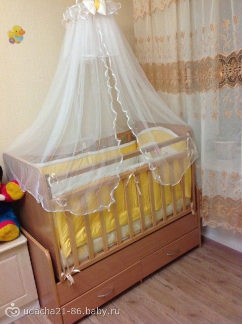постельное я не одевала, только балдахин и бортики и то долго думала как это делать…