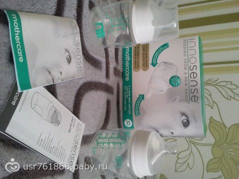 Бутылки Mothercare Innosense (взяла на пробу, хочу докупить Chicco И Avent Natural, т.к. из-за странной формы соски не уверена, что малая будет её брать) Посмотрим...