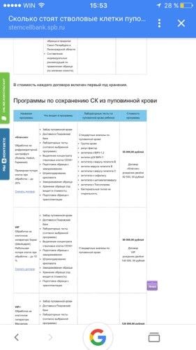 Узнавала у нас в Симферополе — очень дорого. Сначала её как это обрабатывают и потом ещё за хранение. Выходит около 200 000 на 15 лет вроде. Честно, точно не помню на сколько лет. Но в пределах 200 000 мне сказали