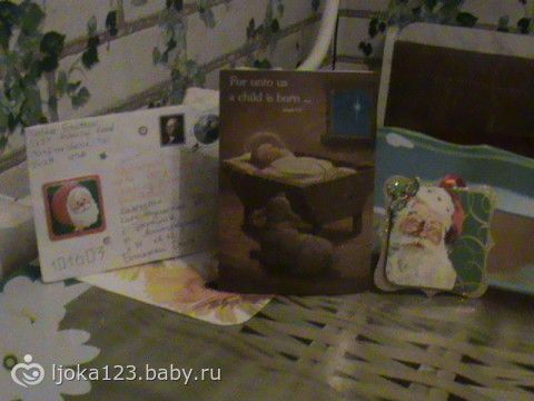 Мне за 2 дня пришло сразу три открытки От бебирушечек. Это так приятно, я честно не ожидала))))))))) Первая от Сашеньки из Америки. Вот такая открытка с Иисусом в яслях и открытка-подвеска, можно на ёлочку вешать