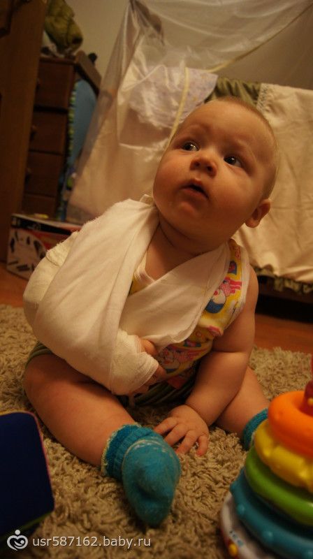 Вчера подруга взяла подержать, я отвернулась себе водички налить… услышала только бабааах… обернулась, а он уже на животике лежит(((((Свидетели сказали, что головой не ударился, что она успела сгладить падение… было это вечером, потом он уснул, всю ночь плохо спал… а утром стала с ним ходить за ручки, а он одной ручкой плохо сжимает пальчик… рука не опухшая, а ходить не может, плачет… сразу заподозрили что-то не ладно… поехали в травмпункт… диагноз-перелом локтевого сустава(((Теперь мы вот такие...
