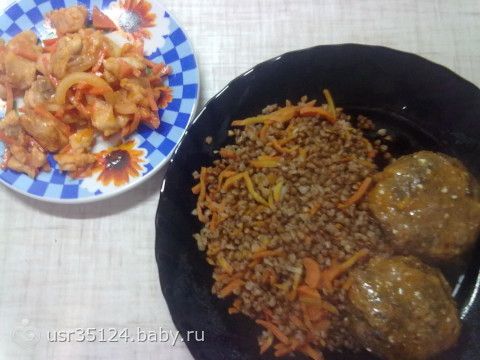 обед: наконец я доела гречку и котлетыи рыба «хе».
