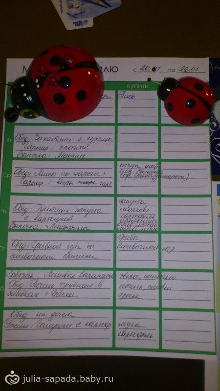 По уборке выполняю задания. а с меню не получается хоть этот вопрос больше всего затруднений каждый день и вызывает.