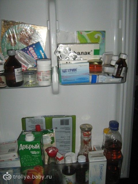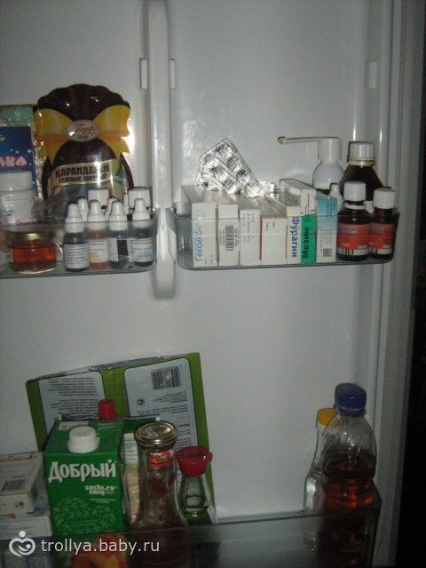 Аптечка. То что надо хранить в холодильнике — в дверце. Был бардак