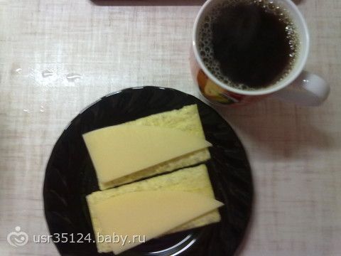 Завтрак: каша овсяная с корицей, бутер с маслом, кофе с конфетками.