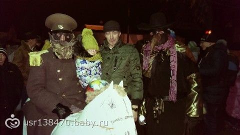 13 января мы были у бабушки. Город маленький, даже больше похож на деревню… Так вот, у них традиция — 13 января все наряжаются и ходят с песнями по домам, а к 22 часам весь город собирается на площади, массовое гуляние у них))) Стоят столики, шашлыки, палатки с шариками различные. Короче, весело там у них!
