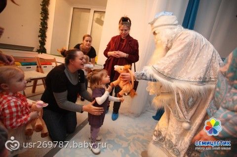 В конце Дед Мороз со Снегурочкой лично вручают подарок каждому ребёнку.