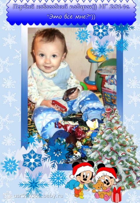 Первый новогодний подарок — конфеты)) еще не знал, что их можно есть)) просто играл ими)))