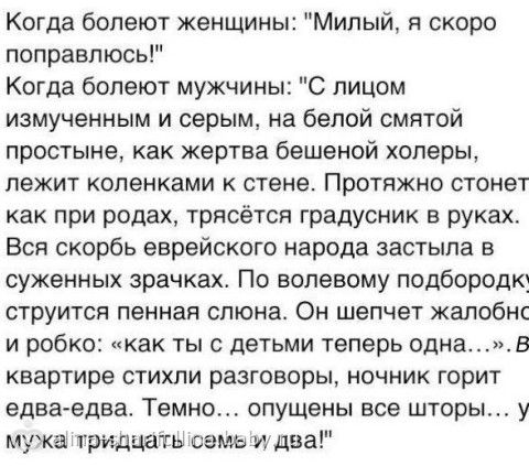 в общем мы все отравились, либо это ротовирус. Сначала заболел сынок, потом я и теперь муж. Господи, если бы вы знали как мне было плохо, но я старалась держаться, ведь рядом сын и ему тоже не хорошо. Муж пришел с работы на обед, не много помог и опять ушел. Я собрала всю волю в кулак и сейчас хоть мне и плоховатенько, всё же держусь… Но муж… как же он расклеился… ему конечно не позавидуешь, но как же он начал себя вести… Мы живем с его родителями, я не давно поругалась со свекровью и теперь у нас с ней нет общения, и так же она обиделась на мужа(она это конечно любит — пообижаться, возненавидеть, отомстить и т.д.) но видимо ей стало жалко сына и она начала хлопатать, от этого конечно муж ещё больше расклеился. Конечно все прошлись по нашему питанию и т.д. сделали вывод что я через молоко заразила сына, хотя он первый заболел… и знаете, мне стало как то завидно что ли, так захотелось к своей маме, она бы мне помогла и пригрела… она находится очень далеко и мне её не хватает… в общем, всё это лирические отступления, написала пост, что бы стало не много легче… и в принципе стало… спасибо за внимание, будьте здоровы, берегите близких