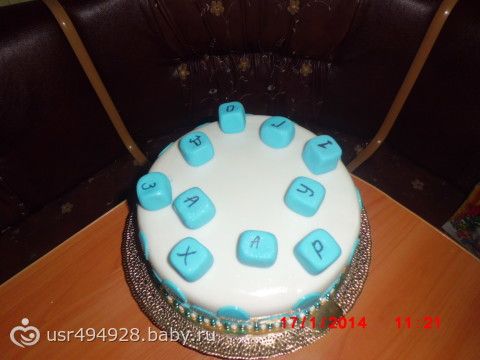 Называется «Кроха»из-за начинки, этот тортик можно давать маленьким (1-3)Крем и бисквиты торта приготовлены на основе манки!!! Девочки не судите что в центре пусто, заказчик хочет сам поставить в центр свечку«ЕДИНИЦУ»Мне кажется со свечкой будет симпатичненько!!!!!!!!!