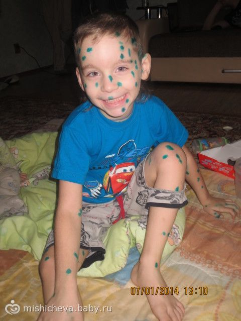 я его уже намазала зеленкой, думаю хуже не будет, если ветрянка завтра еще высыпет. А у старшего на голове были