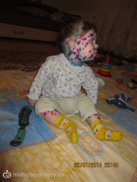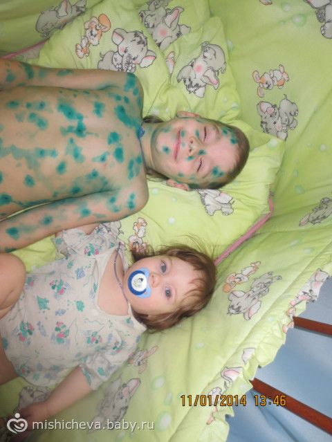 я его уже намазала зеленкой, думаю хуже не будет, если ветрянка завтра еще высыпет. А у старшего на голове были