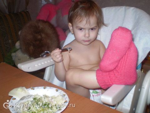 А вот и наша любимая «врединка» — это у Виталинки пошла привычка так кушать… ноги или на стол, или вот так, да еще и обратной стороной ложки (или вообще руками) кушать