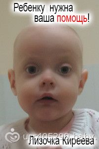 Лиза Киреева только начинает жить. Но на долю этой годовалой малышки выпали испытания, которые по плечу не каждому взрослому. В октябре 2013 года Лизонька попала в онкологическое отделение детской краевой больницы г. Ставрополя, где ей была сделана операция (с целью получения образца опухоли для анализа) и 2 курса химиотерапии.
