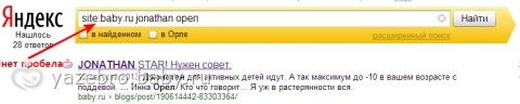 Пример из вчерашнего дня: я хочу найти записи людей с Бэби.ру о комбезе Jonathan, интересуют мнения из Орла (важна одинаковая погода). Если я использую поиск в верхнем правом углу этого сайта, результатов по запросу «jonathan орел» нет www.baby.ru/search?query=jonathan+орел