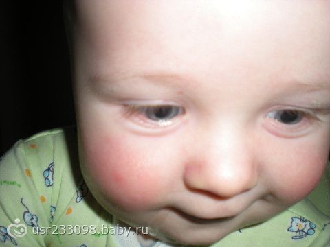 Это от мороза. На всякий случай перестаньте давать сок-компот. Мы мажем кремом морозко, после мороза щечки красные — это нормально! У всех здоровых детей здоровый уличный румянец! Не понимаю мам, которые считают это чем-то плохим