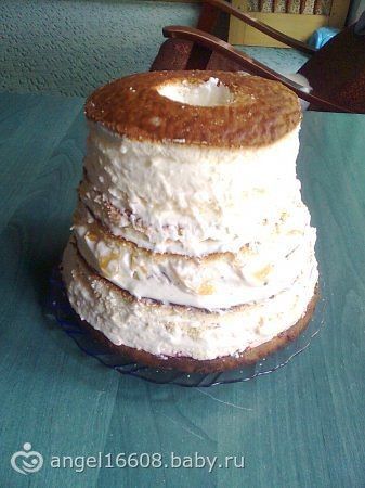 Укладываем коржи по принципу пирамидки. Внизу самый большой, потом поменьше и т.д. до самого маленького.
