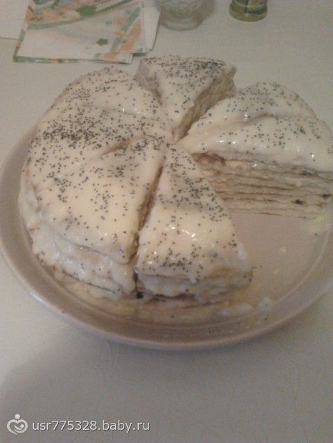 Удалось мне сегодня выделить свободного времени, пока моя доченька спала и муж присматривал за ней, и решила тортик сделать, рецепт простой так же как и приготовление, как говорится-на скорую руку)))))Вот фото, что успела сфотать, я делала с заварным кремом, так лучше пропитывается, между слоями кружочки банана и сверху посыпала маком.Края не обрезала, ну для себя думаю и так сойдет))))А крем на самом деле крем можно какой угодно, на ваш вкус.Рецепт для тех, кому интересно
