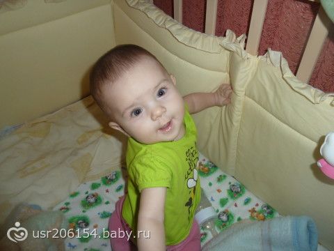 ну хоть выросла на 3 см. Ползаем со скоростью света))сидим, стоим и шагаем вдоль опоры-вообщем шустрая девченка)) Не едим картофельное пюре и супчик