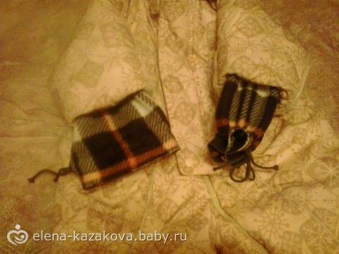 Получился «кулек» для маленькой ручонки. Можно носить отвернутыми в помещении, они не болтаются.