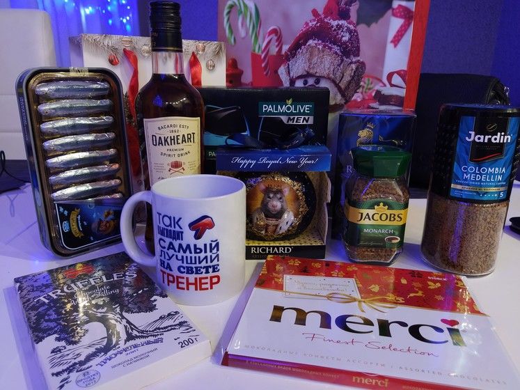Сертификат, шампусик и конфеты.