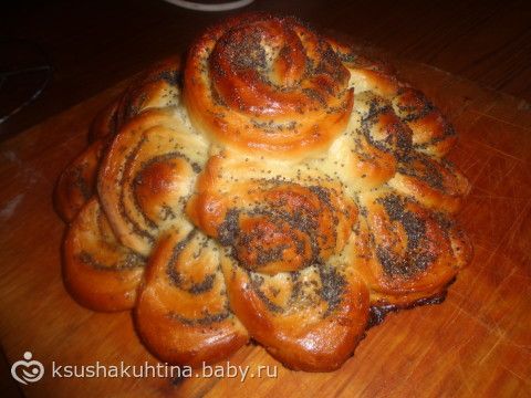 Пока поднимается тесто займемся начинкой. Полстакана мака поварить в воде (или в молоке, кому как нравится), можно при варке добавить 3 ст.л. сахара. Затем воду нужно хорошо слить, чтобы жидкости не было.(я просто замочила мак в крутом кипятке на пол часика потом воду слила потом дала чуток постоять и добавила 3столовые ложки сахара)
