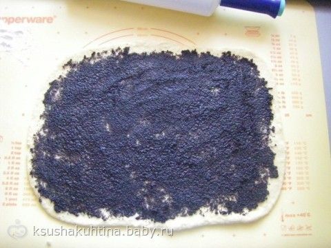 Выкладываем мак и хорошо распередляем его по поверхности теста.