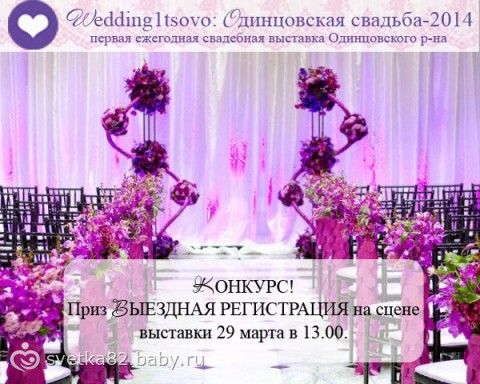 КОНКУРС ДЛЯ ПАР КОТОРЫЕ БУДУТ ЖЕНИТЬСЯ В ПЕРИОД С 25 по 29 МАРТА 2014 года в одном из ЗАГСов Одинцовского р-на! ВНИМАНИЕ! ATTENTION! ACHTUNG! Приз ВЫЕЗДНАЯ РЕГИСТРАЦИЯ на сцене выставки 29 марта в 13.00.