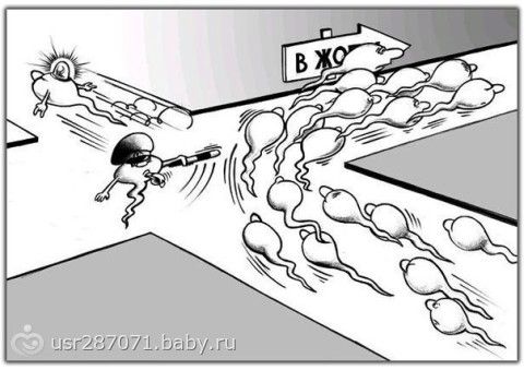 Позади всех плетется сперматозоид, весь кривой-хромой и кричит: