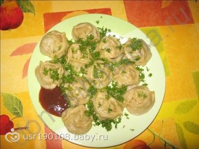 Для теста — несколько яиц (2-3) штуки, вода, мука, соль. Фарш — мясо баранина крупно рубленая (ну или другой фарш на любителя), 5-6 луковиц, и тыква рубленая, перекрученная, по количеству в половину мяса. Очень будет вкусно — за уши не оттянешь.