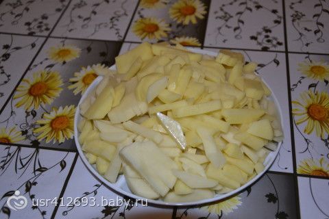 В начале варю говяжий бульон, дальше добавляем картошку