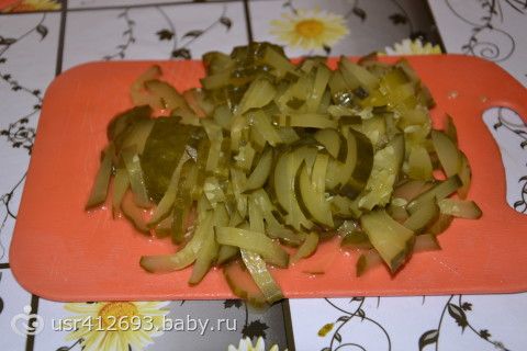 Все соломочкой нарезала, раньше резала кубиками (непринципиальна форма нарезки), зажарила лук, морковь и огурцы, все в кастрюльку положила, добавила оливки и зелень. в тарелочку кладу сметану и лимончик. Приятного аппетита!