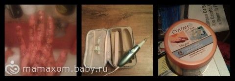 Ванночка со спец. средством, скрабик, крем, маникюр и покрытие на ногти — по ка не крашу)))