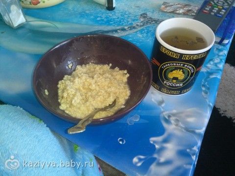 овсянка на воде, чуть подсолена и травяной чай без сахара.