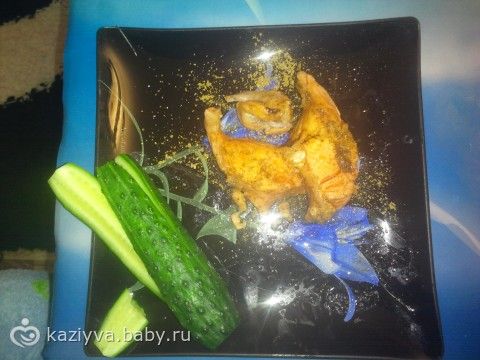 ужин. семга запеченная в духовке, после чуть подсолена и приправлена специями, один огурец.