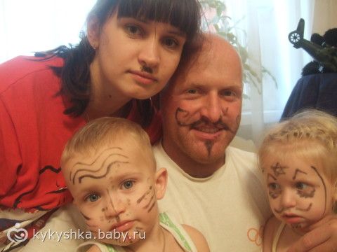 Мы недавно своих малых разрисовали карандашами, начали с Алисы и в итоге вся семья была разрисованна. Дети были в восторге, особенно Алиска, она у нас как Тимати была