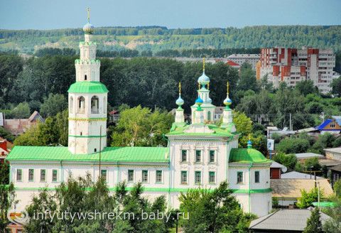 Построена на горе над рекой Сылвой на месте упраздненного женского монастыря в 1758-65 гг. и перестроена в 1882-84 годы. На здании этой церкви впервые в Кунгуре был применен жучковый орнамент. В то же время в 1880-е годы на средства купца Губкина по проекту архитектора А.Б. Турчевича была построена великолепная трехярусная колокольня готического стиля высотой около 70 метров. С этой колокольни открывается отличный панорамный вид на город.