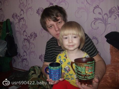 Маленькую кружку наклеил папа, а вот наши кружки — это творениянашей лапулькиной)